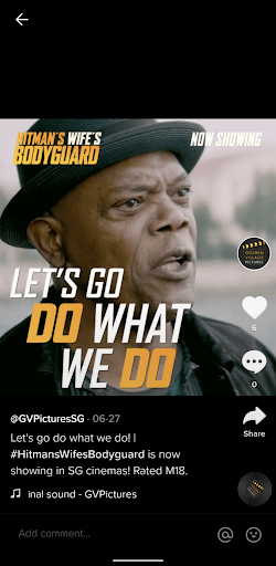 Our very own Golden Village cinemas (@goldenvillagepictures) has built a presence on TikTok through exciting movie preview videos and exclusive promotional content from famous movie actors (like Andy Lau, Aaron Kwok, etc). Started last year, this account has grown to 19k followers and 317k likes with its top post garnering 343k likes to date. The account links directly to their business site, where visitors can book tickets to catch movies that they promote.