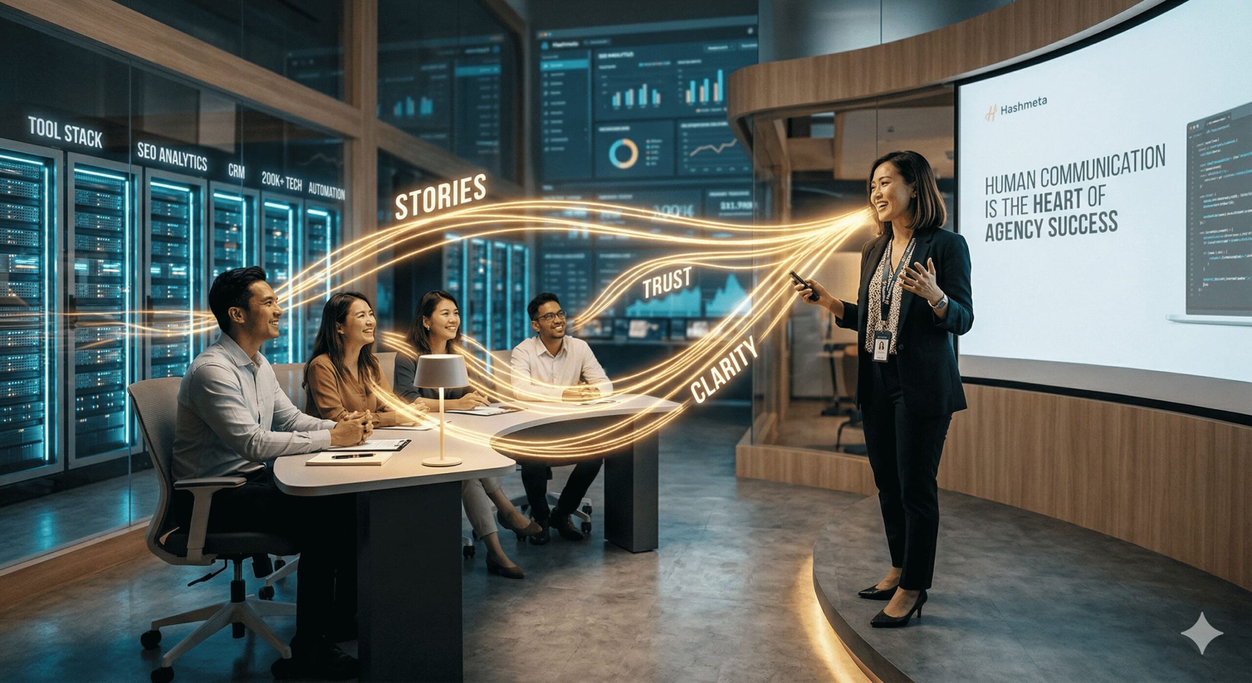 But here’s what we’ve observed across hundreds of client relationships at Hashmeta: the tool stack never saves a bad pitch, and it never rescues a poorly communicated strategy.